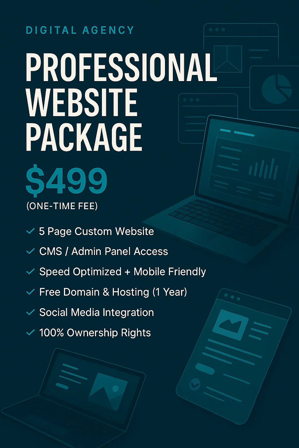 The Professional Website Package is the ideal choice for growing businesses that need more than just an online presence — they need flexibility, scalability, and professional branding.